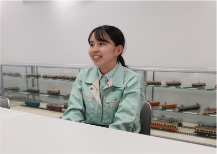 昔から電車が好きで、自分が整備した電車が広島を走る姿を想像したら、とても楽しいなと思い、この仕事を目指しました。
